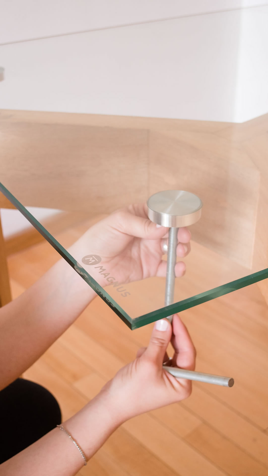 No, nunca el vidrio va apoyado por seguridad. En las mesas de comedor y ratonas trabajamos con un sistema de pegado UV, el cual no se nota, y permite que se encastre a la base para que, de esa manera, no se mueva ni corra. En las mesas auxiliares de hierro, el vidrio se encastra a la estructura, impidiendo se ese modo que se desplace y sea más práctico para su limpieza.