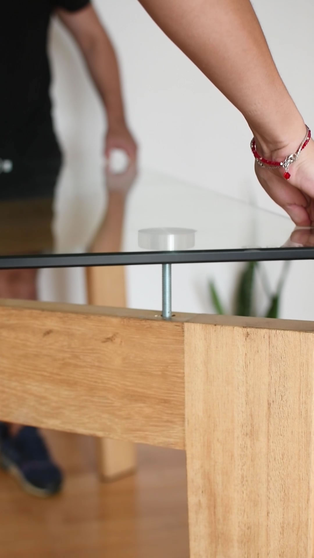 #15 ¿El vidrio va apoyado sobre la mesa?