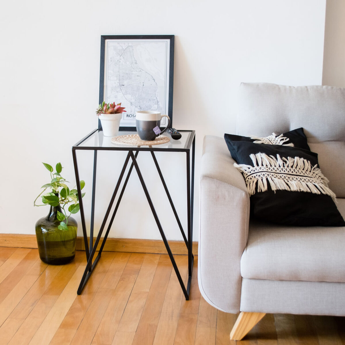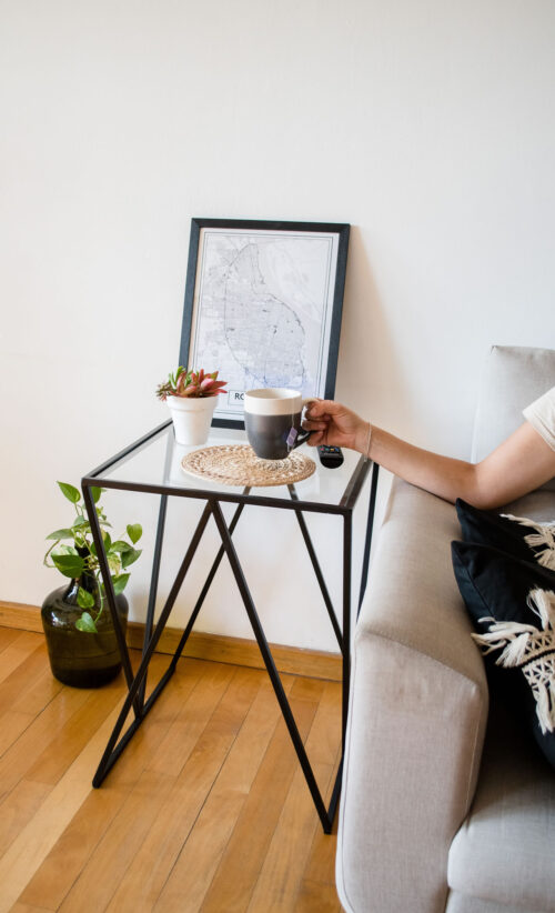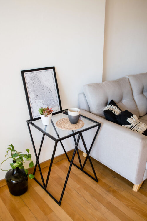 La mesa Atenea pertenece a nuestra colección Industrial Vidrio + Hierro de mesas auxiliares. Su estructura de hierro con diseño en estilo industrial se junta con el vidrio, que le aporta ligereza y calidez a tus espacios.