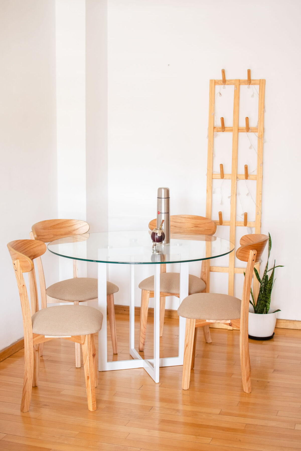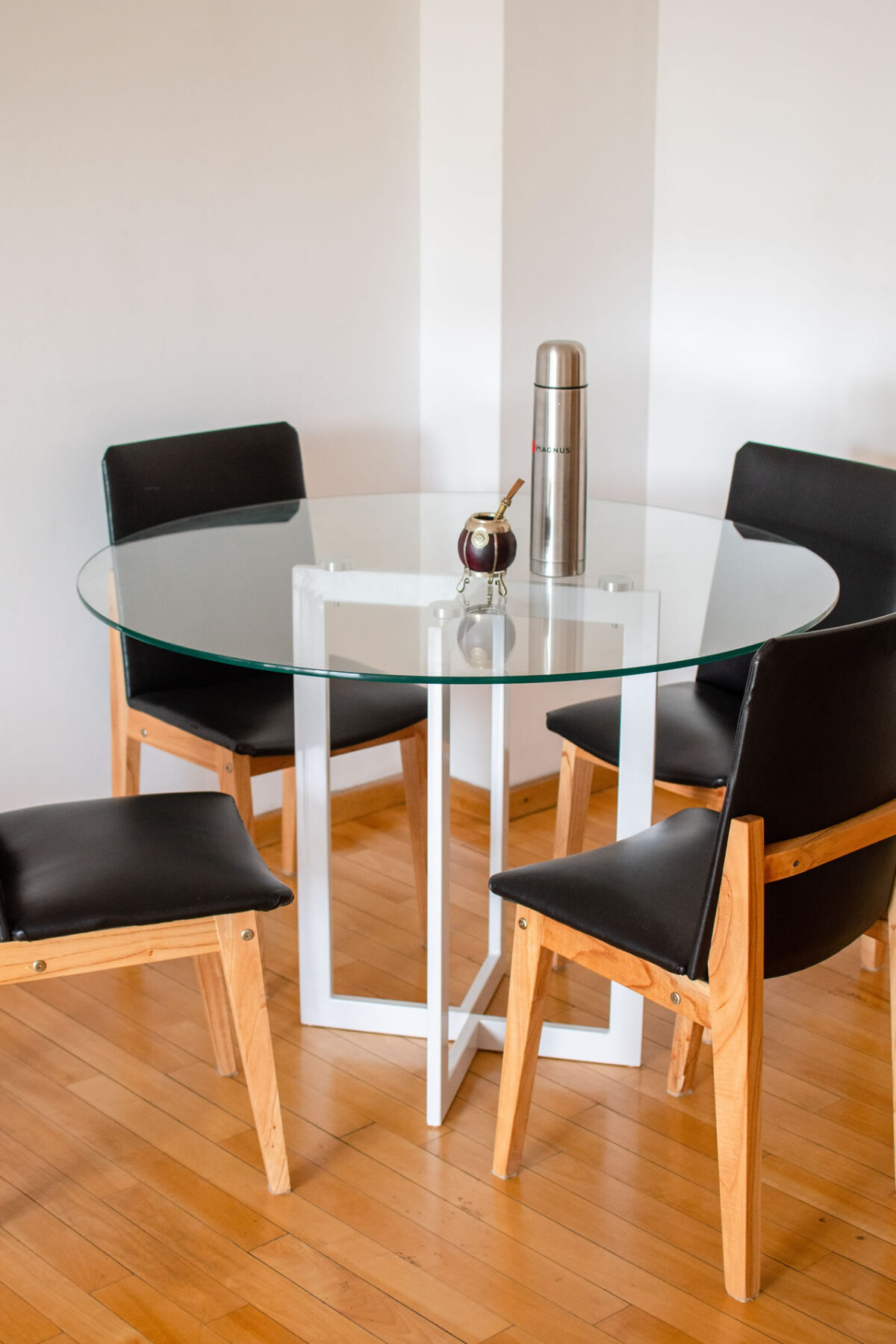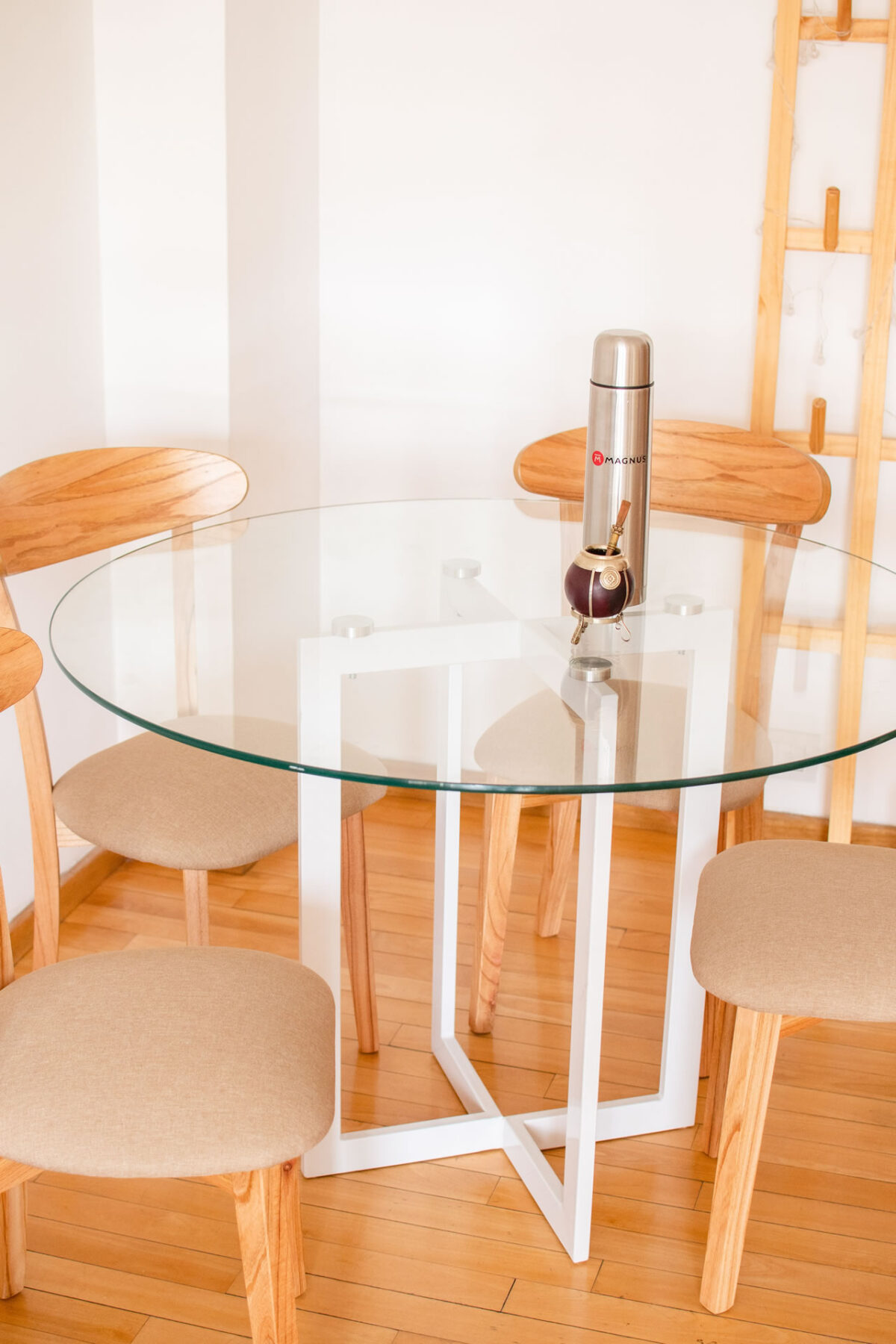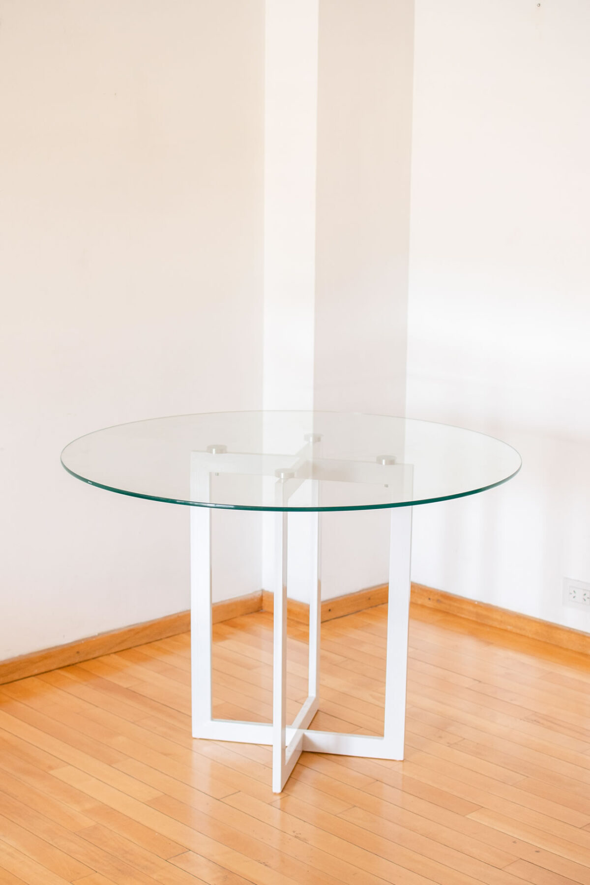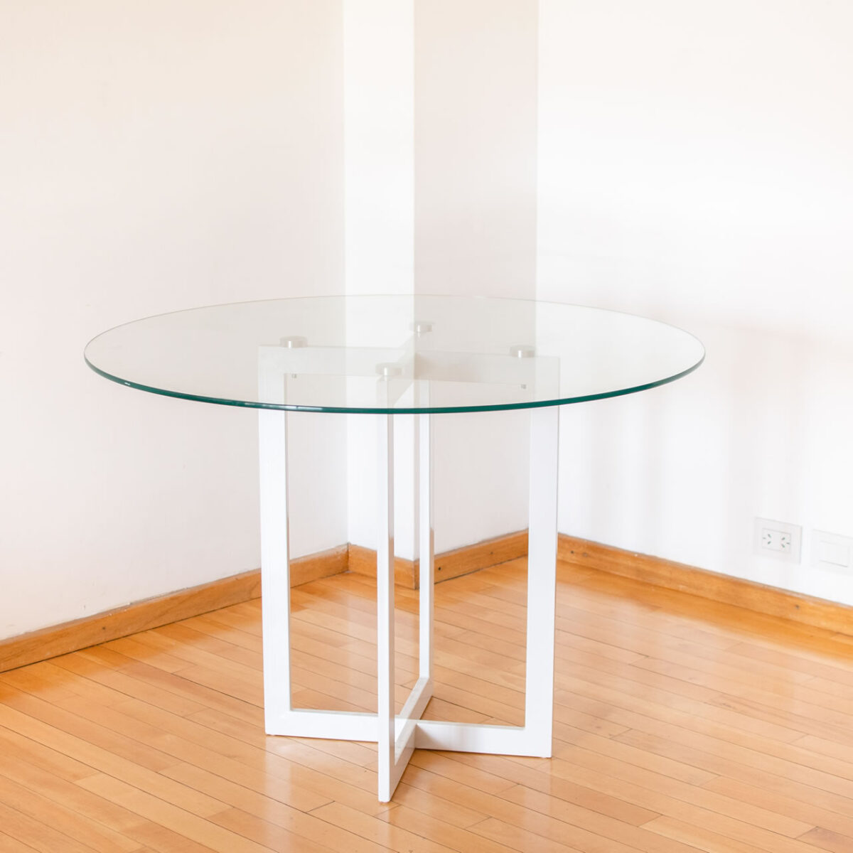 Diseño industrial con base central, con la amplitud visual y ligereza que el vidrio aporta a tus espacios.