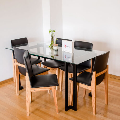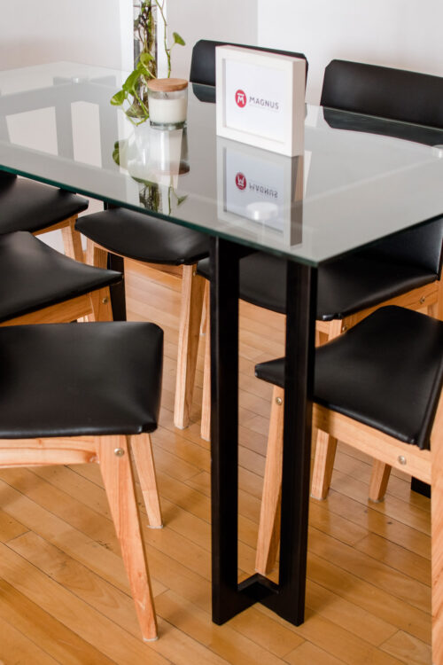 La mesa Zeus pertenece a nuestra colección Industrial Vidrio + Hierro de mesa de comedor. Cuenta con una base con líneas clásicas, pero con la modernidad del estilo industrial y combinación de tapa de vidrio templado y desmontable, que aporta amplitud y ligereza a tus espacios.
